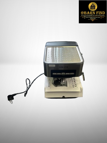 It's an electric coffee maker with a 850W power source and a 1.6 Liter water tank capacity. It can prepare espresso, cappuccino, and latte, and includes a steam wand for frothing milk.