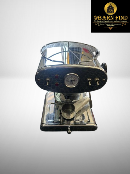 It includes a professional steam wand for frothing milk, automatic shut-off, and variable volume control for different espresso lengths. The X1's vintage-inspired design and sinuous lines make it a notable design object for any kitchen.