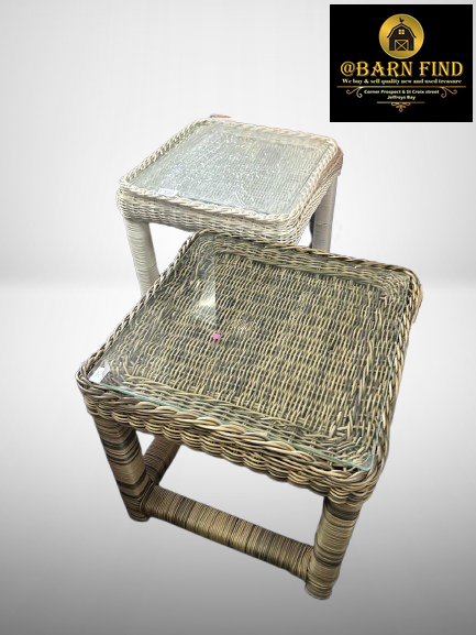 These versatile pieces can function as decorative side tables, end tables, or even as serving tables for entertaining. The removable brass tray can also be used independently for serving or as a decorative wall piece.