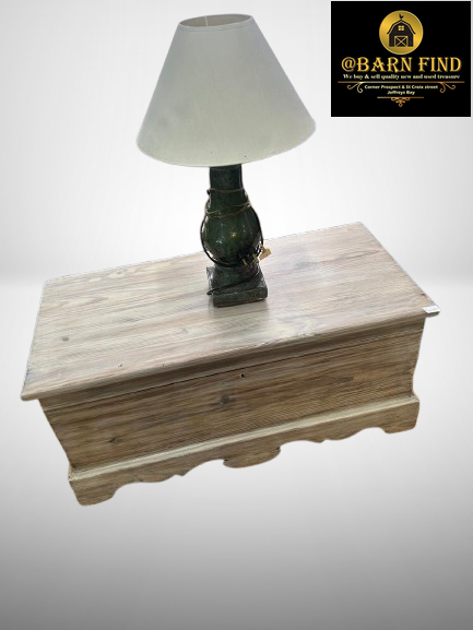 Crafted from solid wood, it offers sturdy construction and ample storage space, making it ideal for keeping blankets, linens, or treasured keepsakes neatly tucked away. The classic silhouette is accented with gently curved base detailing, giving it character and warmth that complements both traditional and farmhouse-style décor. Perfect as a statement piece at the foot of a bed, in a living room, or even as a unique coffee table, this chest combines practicality with vintage elegance.
