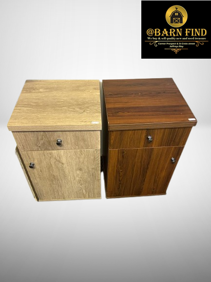 Each table features a smooth, wood-grain finish—one in a warm natural tone and the other in a rich darker shade—making them easy to mix and match with a variety of décor styles. A convenient top drawer and spacious cabinet below provide plenty of room to store everyday essentials, while the flat surface is perfect for a lamp, books, or decorative accents. Ideal as bedside tables or living room companions, they combine functionality with simple, contemporary style.