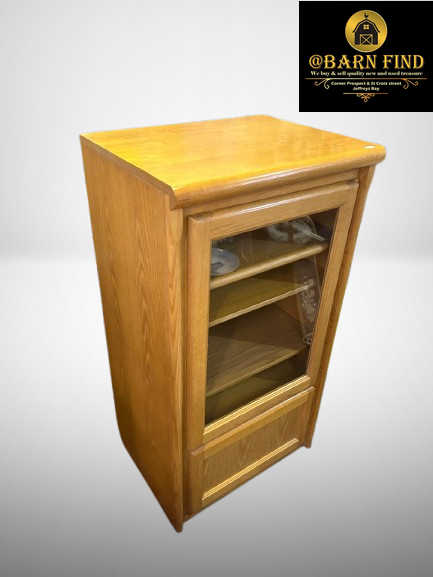 The glass-fronted door showcases three interior shelves, perfect for displaying collectibles, dinnerware, or decorative pieces while keeping them dust-free. A solid lower panel adds a touch of elegance and provides a neat finish. Sturdy and versatile, this cabinet is ideal for a dining room, living room, or hallway, combining practical storage with attractive presentation.