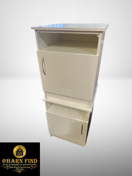 White bedside pedestal with an open shelf and a cabinet at the bottom.