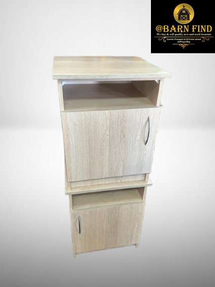 Wooden bedside pedestal with an open shelf and a cabinet at the bottom.