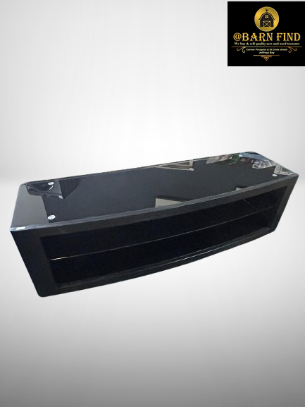 High-gloss TV stand/entertainment unit which features a sleek , modern design with a reflective black finish, adding a touch of sophistication to a room. Open shelving provides space for media consoles, sound systems, or decorative items, and the curved front adds a stylish element.